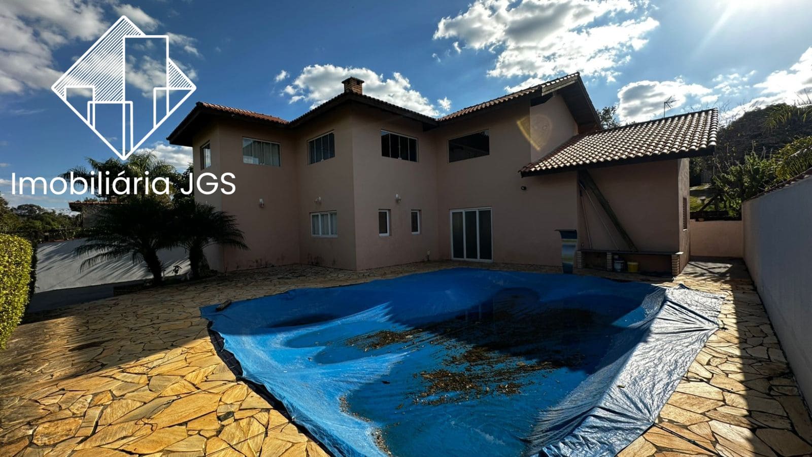 ◽️Piscina ampla de azulejo com cascata
